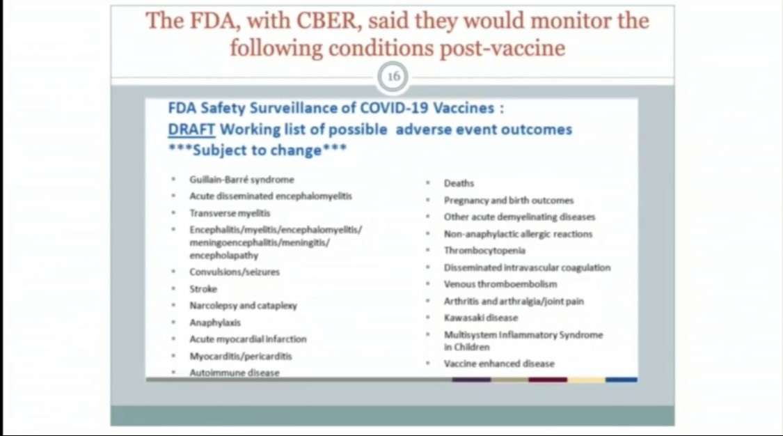 People who are sick/dying in the hospital usually get a “code” for what they are dying from, Renz said. He added that there is NO code for Covid vaccine injury/death. Yet the FDA said it would monitor the conditions above post-vaccine. So there are side effects? You wouldn’t know from the crazy Covid information restrictions being proposed in public.
