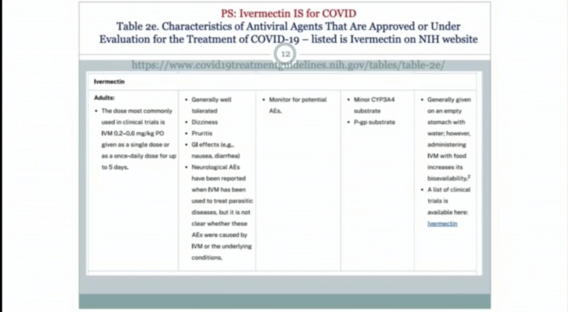 Ivermectin costs about $24 per patient and only 7.2% of Covid patients (from Medicare) who were prescribed it—yes, apparently Ivermectin is in fact being prescribed despite the “horse drug” frenzy—died. And the NIH apparently has Ivermectin listed as an investigatory drug for Covid, per Renz.