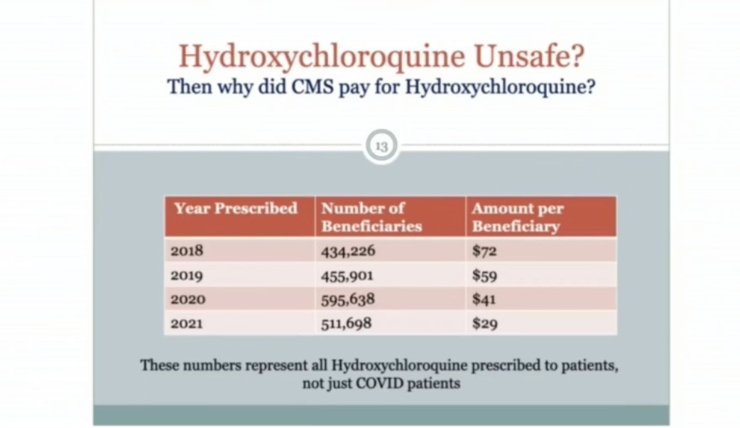And CMS paid for Hydroxychloroquine for 511,698 people (not all Covid patients) in 2021. Remember, that was the treatment Trump was ridiculed for recommending. And yet a government agency was paying for it for over 500,000 people. And both Hydroxychloroquine and Ivermectin make the medical industry substantially less money than the dangerous Remdesivir.