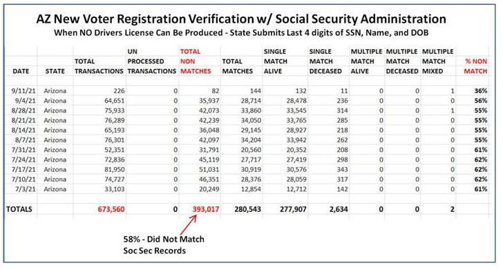 AZ Voter Registration Creds Have 58% No Match Found With Social Security Admin