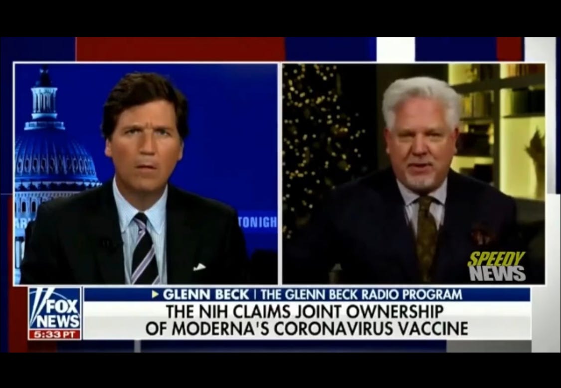Political commentator Glenn Beck appeared on Tucker Carlson's show to talk about a shocking document, wherein the NIH/NIAID (think Fauci and Francis Collins) and Moderna signed an agreement for a coronavirus vaccine. . .before the world even supposedly knew about the existence of Covid-19 and a pandemic.