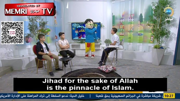 “Jihad in the name of Allah is the highest calling in normative Islam. The abuse of young children by this indoctrination — using a harmless-looking puppet, no less — is in service of recruiting them to fight in that jihad.