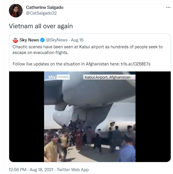 Earlier this week, there were terrifying scenes like Vietnam all over again of desperate people trying to escape Afghanistan by clinging to the outsides of planes. Here is one video.