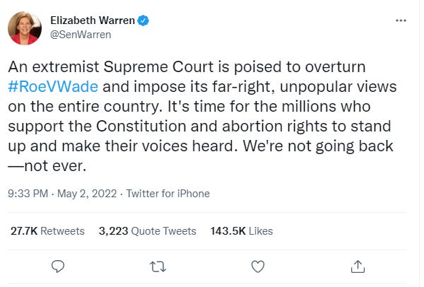Sen. Elizabeth Warren essentially made the argument that Roe is a key part of the Constitution: