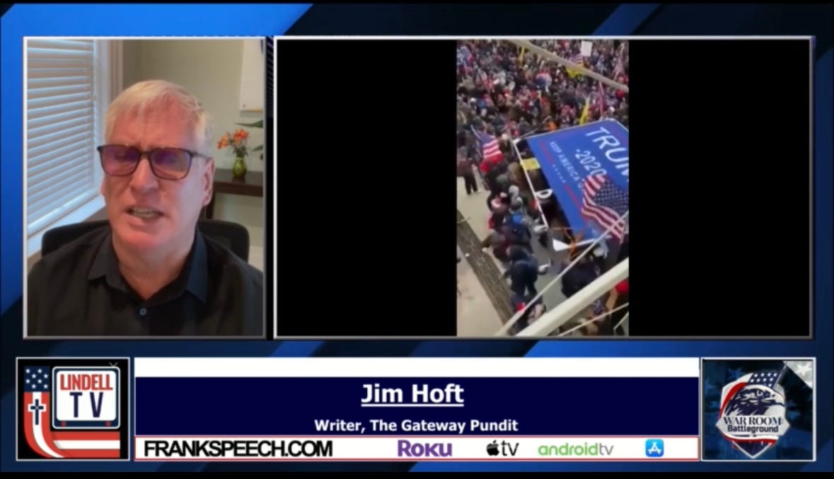 The Gateway Pundit’s Jim Hoft, while slamming the ridiculous propaganda 60 Minutes put out about Ray Epps (almost certainly a fed plant) on Bannon’s War Room, noted all the key facts 60 Minutes left out. These include the fact that Epps was caught on video—unlike all the Trump supporters abused and denied rights and necessities in jail—before Jan. 6 urging people to storm the Capitol. Epps also led the breaches, Steve Bannon said—and Epps said he “orchestrated” Jan. 6 in an uncovered message. But Hoft has newly uncovered footage showing that Epps was helping push a huge metal Trump sign at law enforcement.