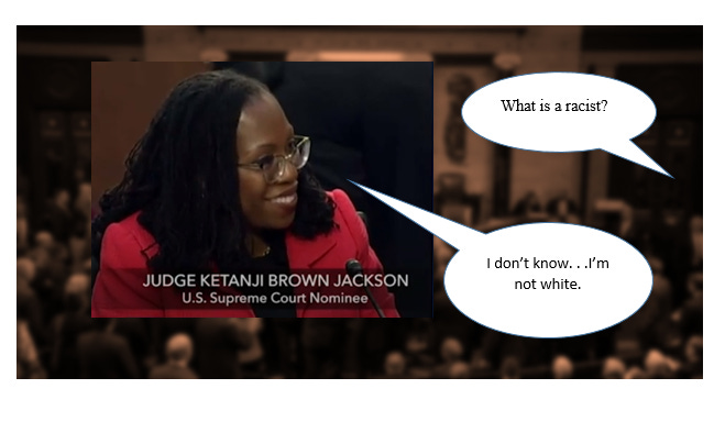 Biden’s Supreme Court nominee Ketanji Brown Jackson, when asked by Sen. Blackburn, “Can you provide a definition for the word woman?”, infamously responded, “I can’t. . .I’m not a biologist.” Since Judge Jackson also has a history of supporting radical critical race theory, which wrongly teaches racism as a purely white fault, I present this satirical meme: