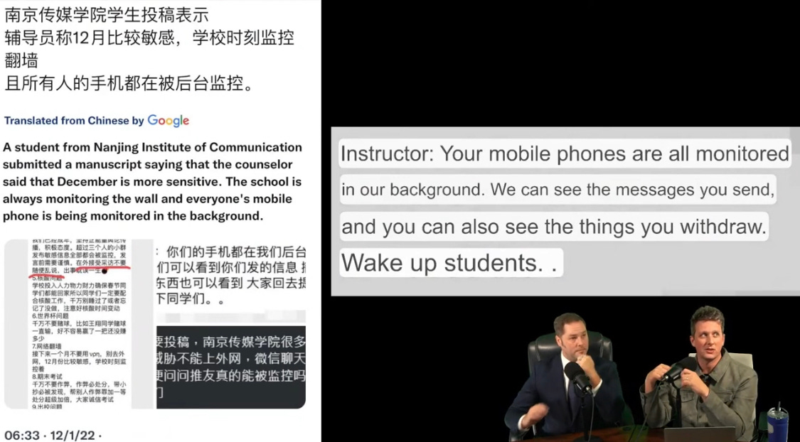 The idea that zero-Covid policies are being lifted is a complete lie, Matt and Winston emphasized. It’s meant to fool the West—and, unfortunately, seems to be doing so. Matt and Winston shared footage of CCP police doing phone checks on the metro; checking for forbidden apps, VPNs, suspicious photos, any of which could get the person arrested. Everyone’s mobile phone is being monitored, zero-Covid restrictions have been increased (not eased) in some places, and censorship and actual torture and arrest against the Chinese people are on the rise.