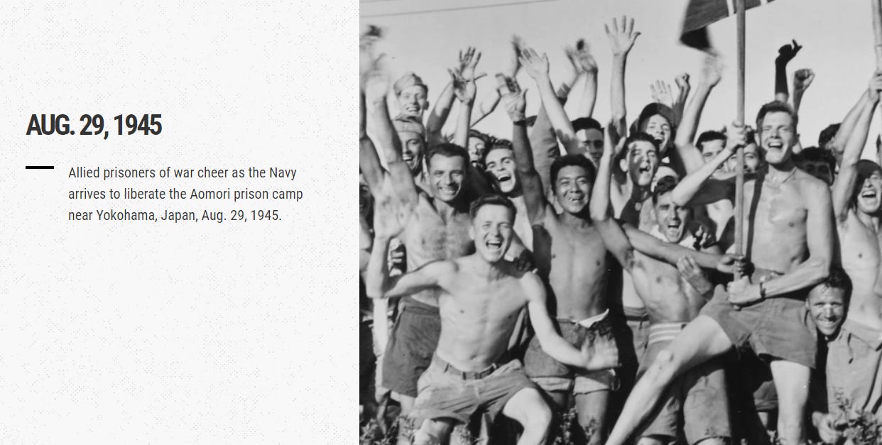 The free and democratic West had triumphed. This was not just a time for Westerners to celebrate, though—obviously the peoples of the various Asian countries the Japanese had committed war crimes against, especially China, could whole-heartedly celebrate too. China was represented at the V-J surrender, in fact. And of course, particularly when referring to Americans, the prisoners of war under the cruel control of the Japanese (who used to cannibalize prisoners, as just one example) were of all ethnic backgrounds. It is not making a racist or imperialist statement to say Japan had been seeking and maintaining what was, in many ways, an evil empire.