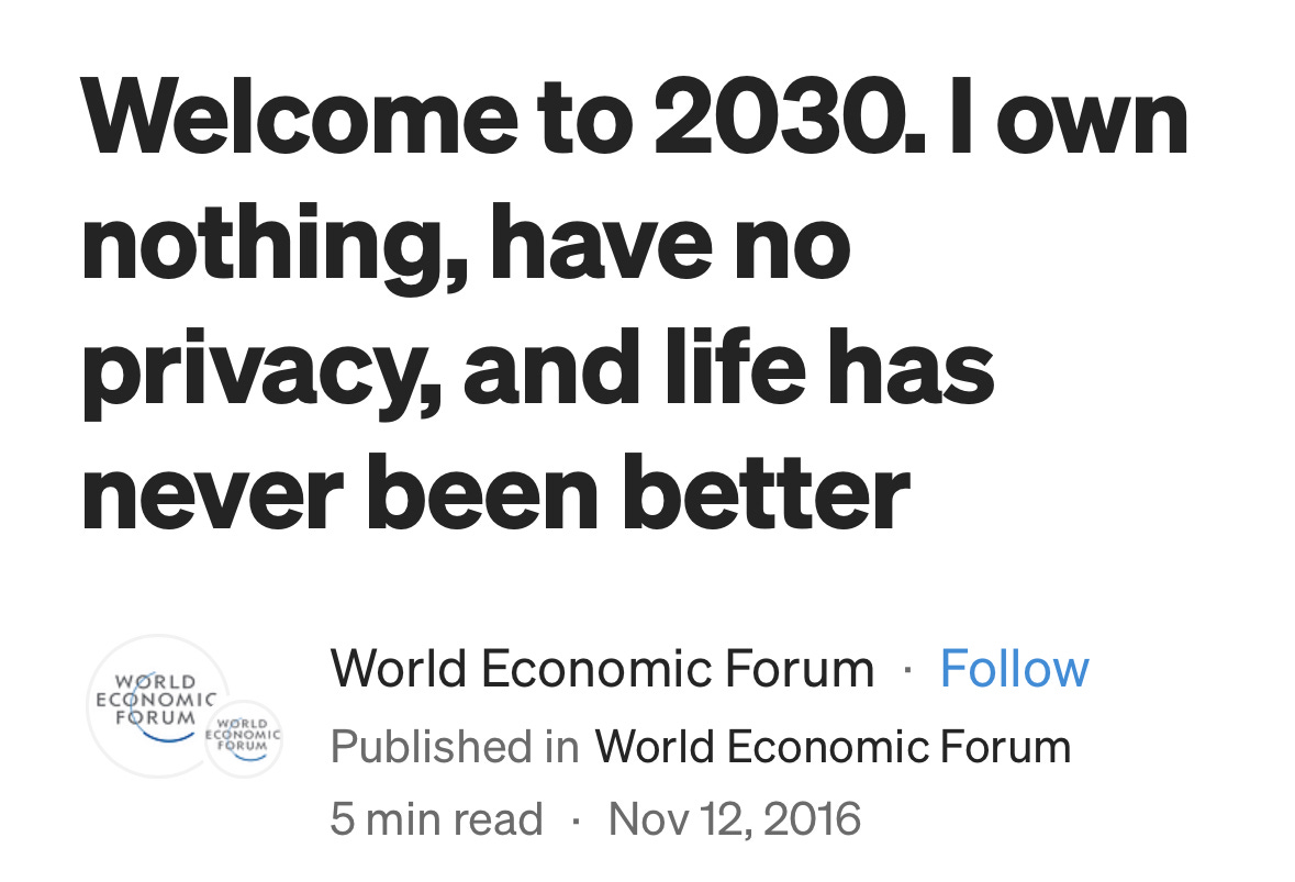 “Welcome to 2030. I own nothing, have no privacy, and life has never been better