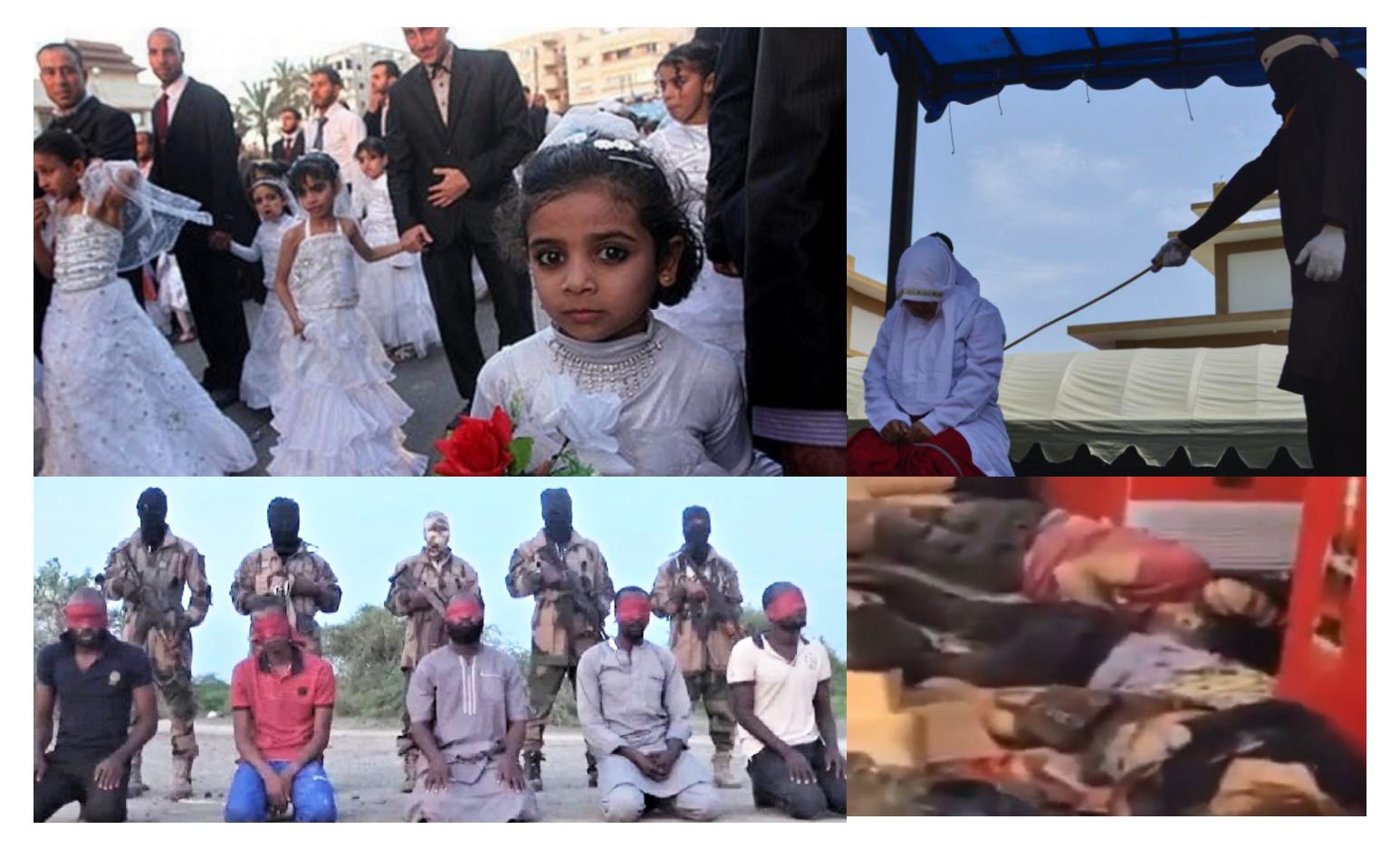 Then there’s the approval of pedophilia. Hadith and Sirah alike confirm that Muhammed married Aisha when she was only six and consummated the marriage when she was nine (he was in his fifties). “[Hadith:] The Prophet wrote the (marriage contract) with Aisha while she was six years old and consummated his marriage with her while she was nine years old and she remained with him for nine years (i.e. till his death)” (Bukhari 7.62.88) Since then, a number of Islamic scholars have argued not only in defense of child marriage but that there is no minimum age for a girl for marriage; the latter is not provided for in Islamic law. Even infants can be legally “married” in Islam.